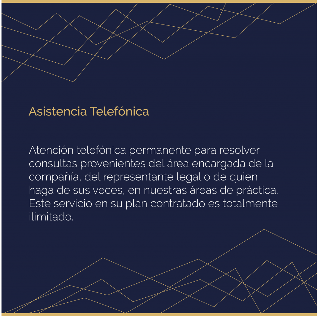 Para nuestra firma de Abogados es de suma importancia brindar servicios jurídicos a pequeñas, medianas y grandes empresas del sector privado que busquen un crecimiento exponencial basados en los lineamientos legales en beneficio tanto de la compañía como de sus colaboradores. Prestamos servicios de asistencia telefónica In-Situ a nuestros clientes corporativos con el fin de garantizar y ofrecer la tranquilidad necesaria a la hora de desarrollar su actividad comercial.